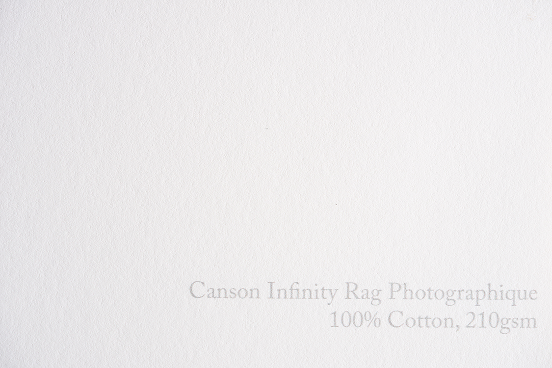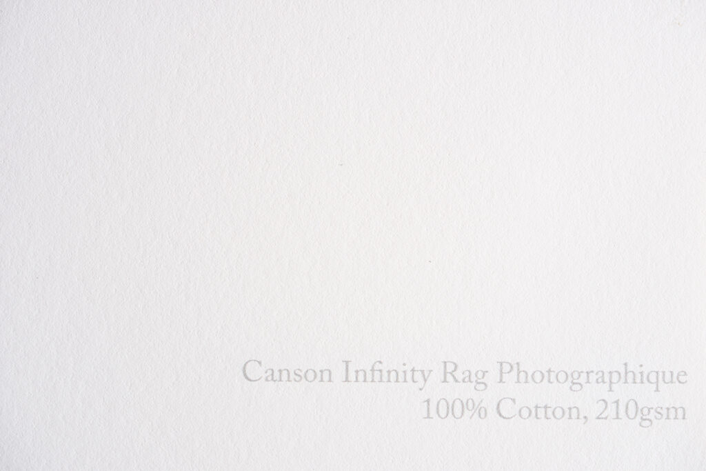 Rag Photographique offers a unique extra smooth surface with a sensual feel. A 100% cotton museum grade white Fine Art and photo paper. The exceptional smooth white tone is achieved during manufacturing by introducing natural minerals to the process. It has been developed to address the need for continued longevity requirements in the Digital Fine Art market.